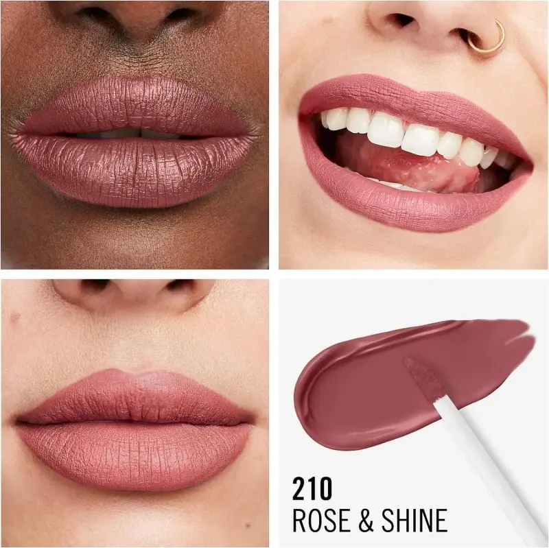 Tired of matte lipsticks that feel dry and crack? Experience the best of both worlds with Rimmel London Lasting Mega Matte Liquid Lipstick in 210 Rose & Shine. This formula delivers a stunning mega matte finish that lasts up to 16 hours, while keeping your lips incredibly hydrated and comfortable. Say goodbye to dry, uncomfortable matte lips forever!