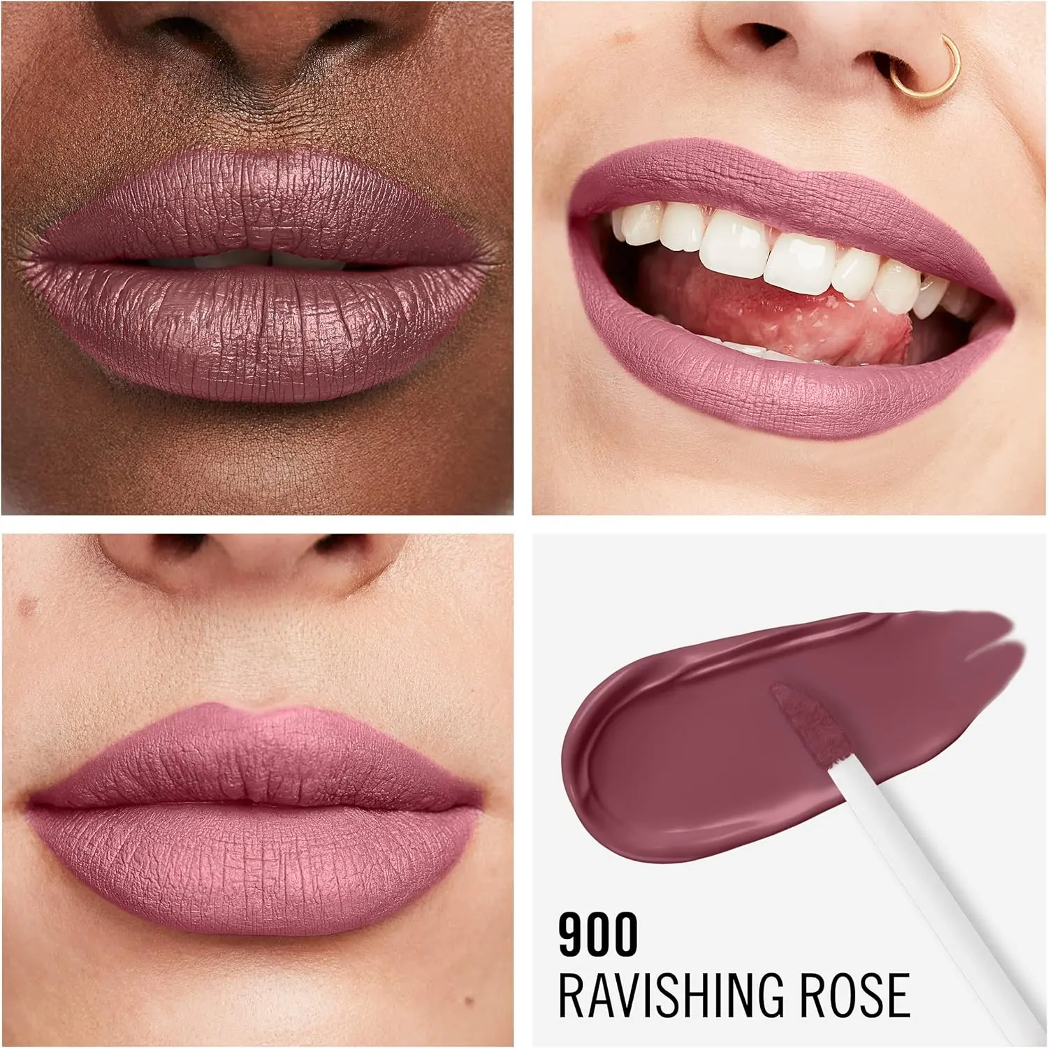 Rimmel London Lasting Mega Matte Liquid Lipstick, Long-Lasting, Hydrating, Vegan Formula - 900 - Ravishing Rose, 7.4ml