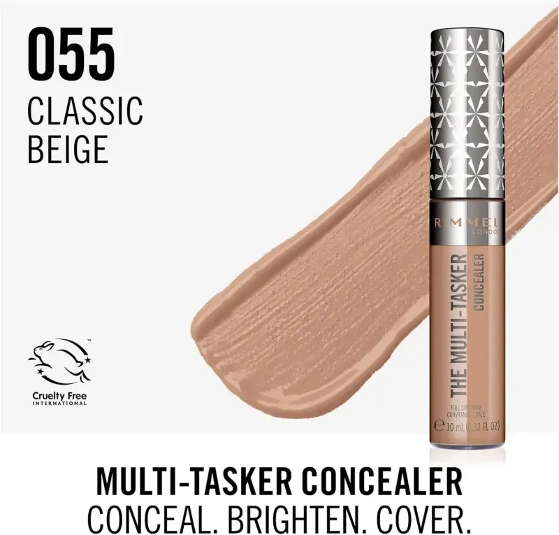 Rimmel London The Multi-Tasker, 055 Classic Beige, Concealer, Up To 24-Hour Wear, Up To 24-Hour Hydration, High-Pigment Formula, Blendable, Vegan Formula, 10ml