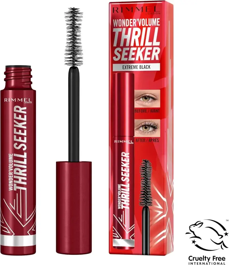 Tired of lashes that fall flat or look clumpy? Get ready for dramatically bold volume and incredible length with the Rimmel London Thrill Seeker Mascara. This mascara is designed to transform your lashes, giving you a fearless, wide-eyed look that lasts all day without smudging or clumping.
