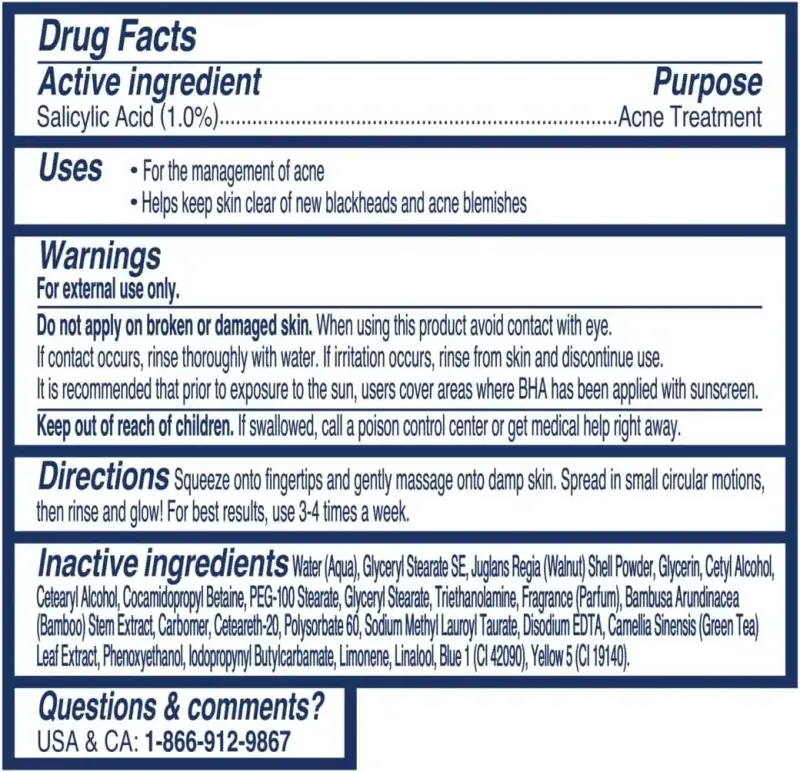 This effective face scrub is formulated with 1% salicylic acid to target and clear blackheads, while gently calming redness. It’s made with 100% natural exfoliants that provide a medium level of exfoliation, perfect for unclogging pores and removing impurities without irritation. The inclusion of natural green tea extract offers soothing benefits for your skin.