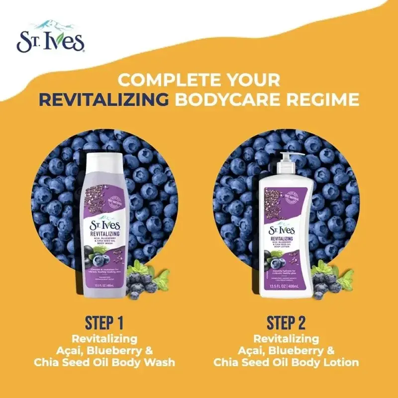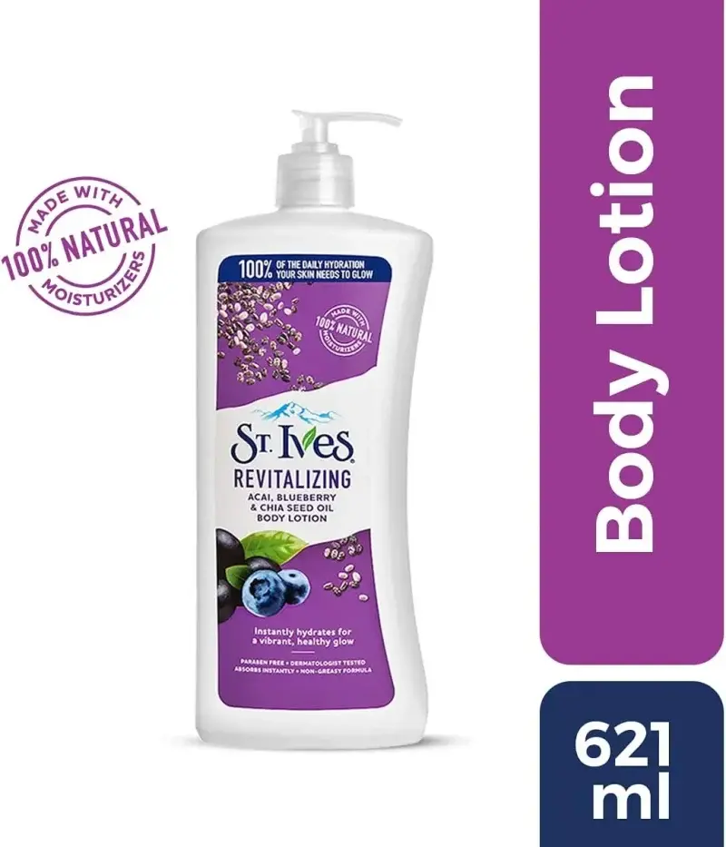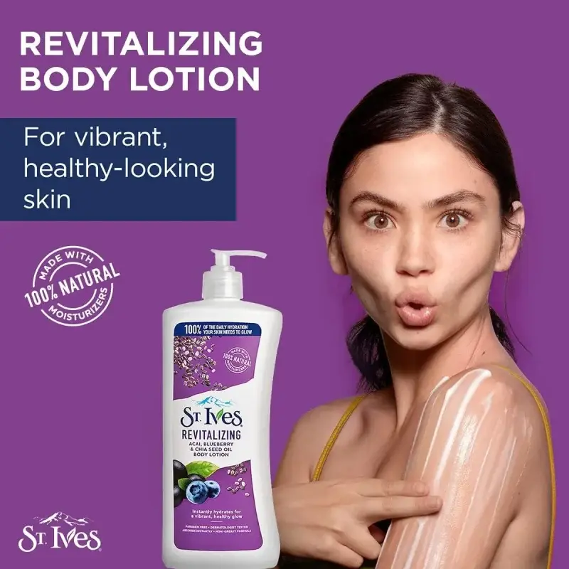 Is your skin feeling dry, dull, or tired? Give it the revitalizing boost it deserves with St. Ives Revitalizing Acai, Blueberry & Chia Seed Oil Body Lotion. This luxurious lotion is your secret to instantly hydrated skin, revealing a vibrant, healthy glow that feels as good as it looks. Say goodbye to dullness and hello to radiant, refreshed skin.