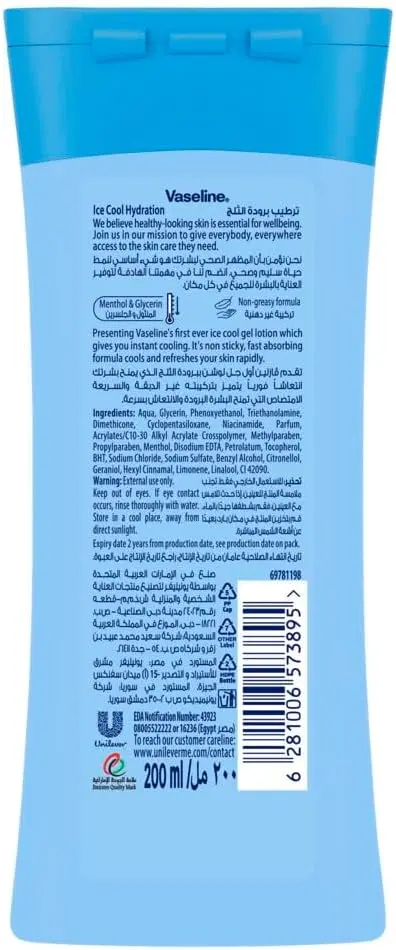 Give your skin the ultimate cooling and hydrating experience it deserves. Vaseline Ice Cool Hydration Body Lotion is the ideal choice for refreshing, comfortable, and beautifully hydrated skin all summer long.