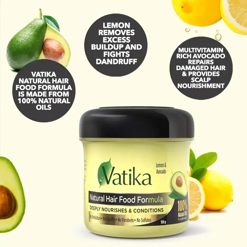 Are you battling dandruff and looking for a natural way to nourish your hair and scalp? Vatika Hair Food with Lemon & Avocado is your perfect solution. This 100% natural hair food is packed with the revitalizing power of Lemon, known for its ability to remove excess buildup and effectively combat dandruff, leaving your scalp feeling clean and refreshed.