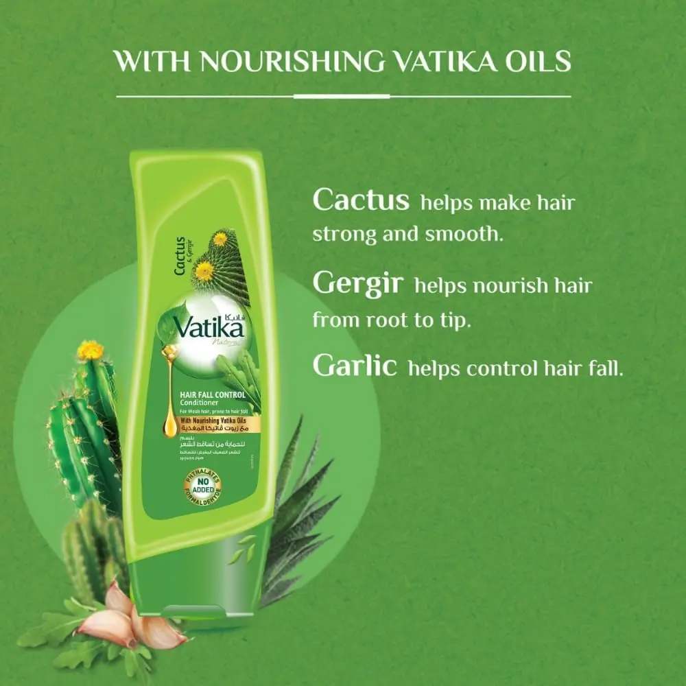 Is excessive hair fall and thinning hair causing you distress? Vatika Naturals Hair Fall Control Conditioner, enriched with the goodness of Cactus and Ghergir, is your natural solution. This potent herbal recipe works intensively to nourish your hair from root to tip, helping to significantly control hair fall and strengthen weakened strands.