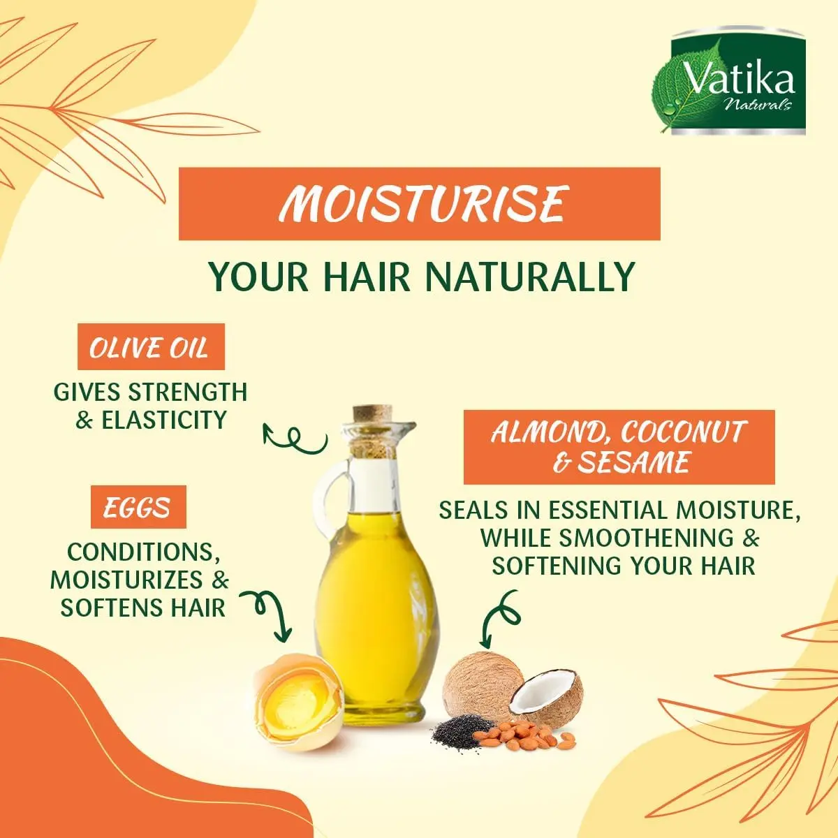From first-time users to long-term fans, find out why our product is the best choice for you. See what others love about our product and why they keep coming back for more. Vatika Naturals Extreme Moisturising Hair Mayonnaise is enriched with Almond, Coconut and Sesame, it seals in essential moisture, while also smoothening and softening your hair. Hair Problem – Dry, Frizzy & Coarse Hair. Benefits – For Revitalized, Shiny Hair.