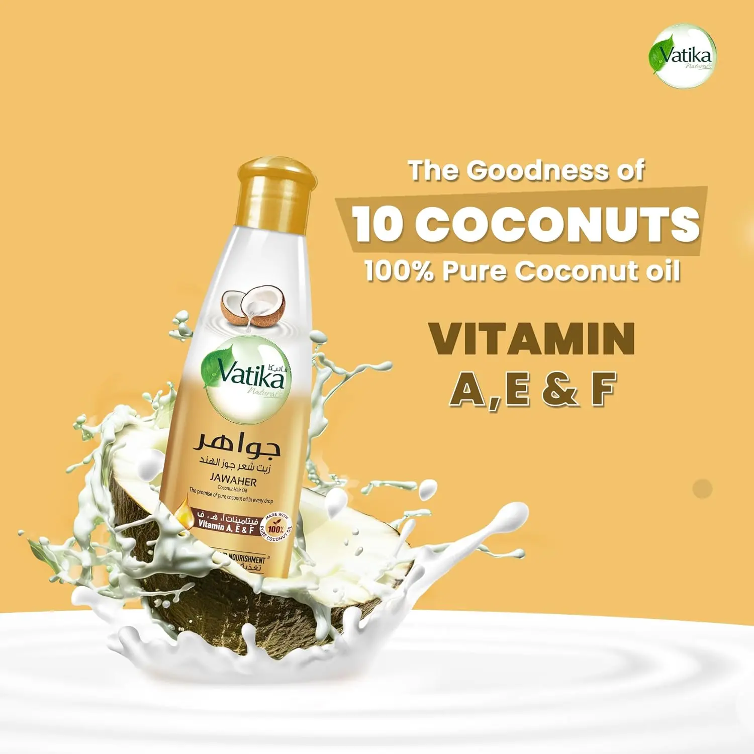 Is your hair crying out for nourishment, feeling weak and damaged? Imagine transforming your crowning glory into a testament of strength and beauty with the pure richness of coconut oil. Vatika Jawaher Coconut Hair Oil offers 10x hair nourishment, strengthening and repairing your hair from root to tip. Say goodbye to damaged cuticles and hello to thicker, healthier, and radiantly beautiful hair.
