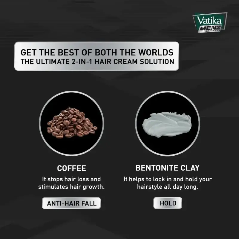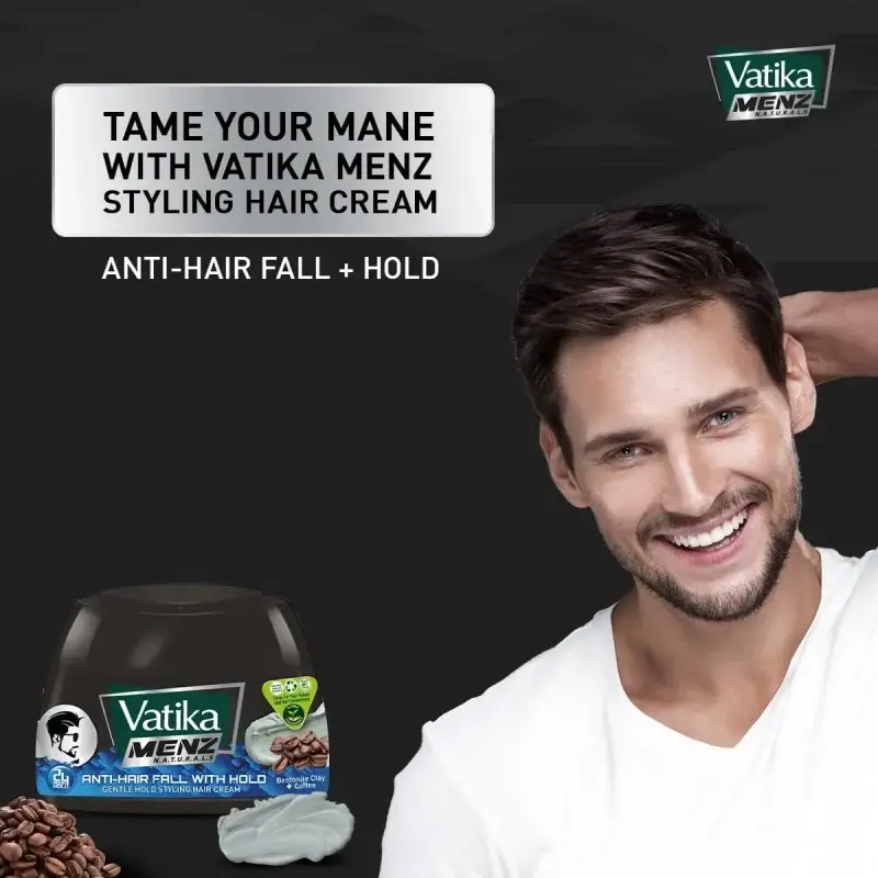 Worried about hair fall and struggling to keep your hairstyle in place? Vatika Naturals Menz Anti-Hair Fall Styling Hair Cream offers a powerful dual solution. Its unique formula is enriched with organic coffee extracts, known to work deep into your scalp to strengthen hair follicles and stimulate growth, actively preventing hair fall.