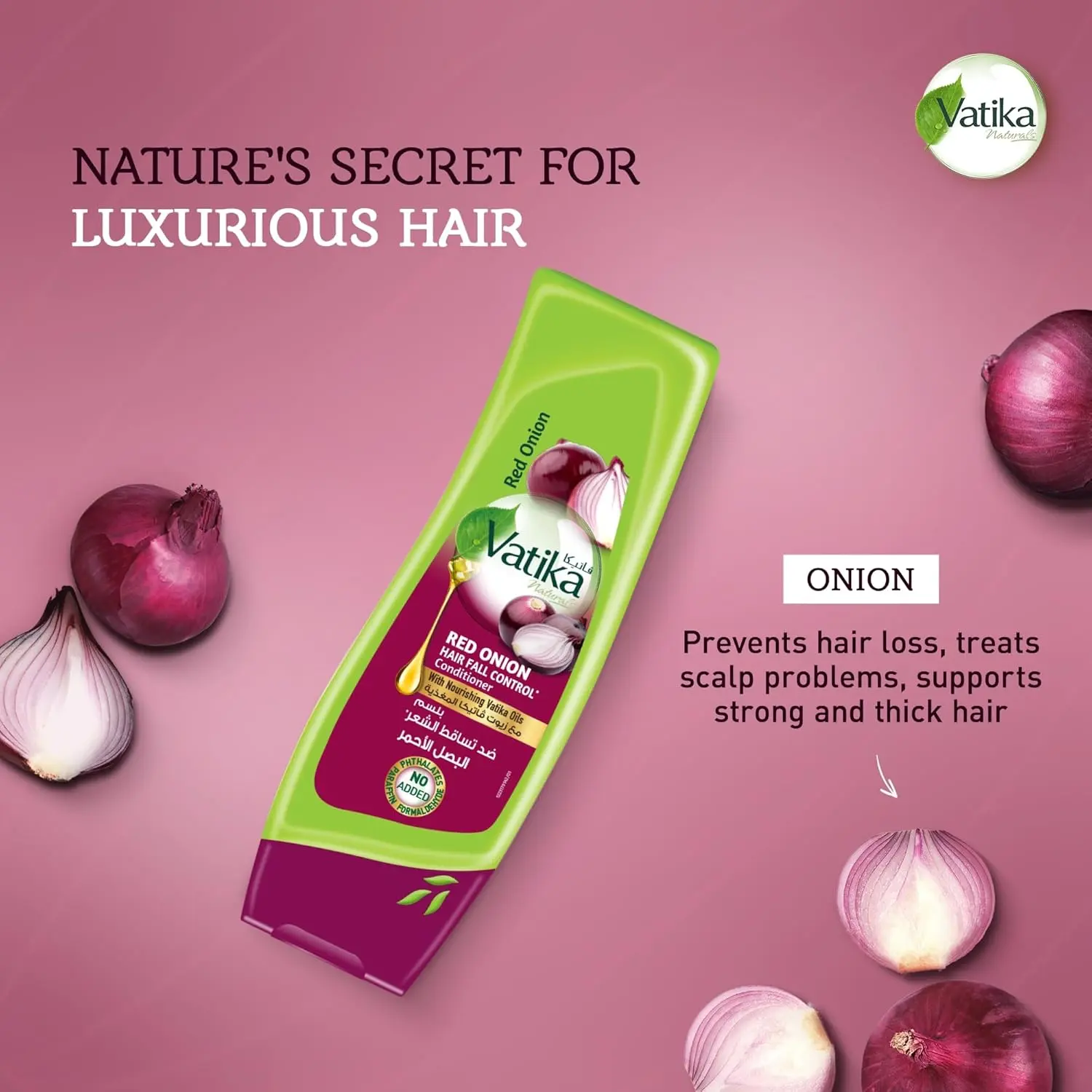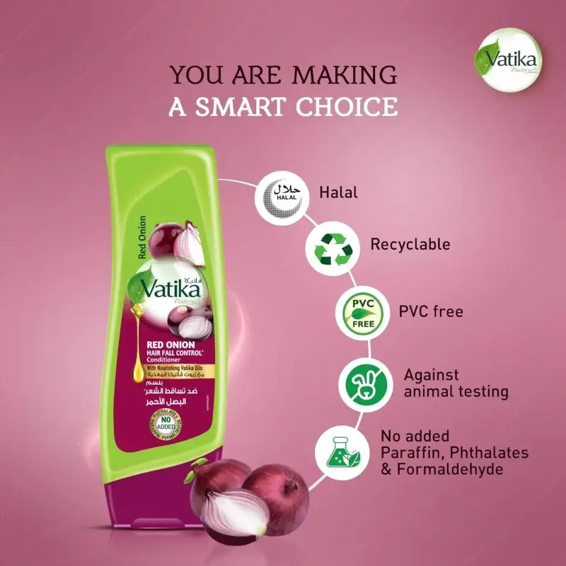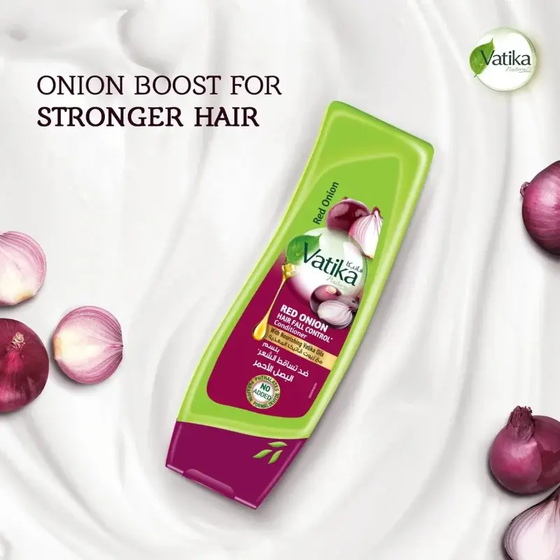 Struggling with hair thinning and breakage? The Vatika Naturals Red Onion Conditioner is designed to strengthen your hair from the roots and promote healthier growth. Infused with the natural power of onion extract and a blend of nourishing Vatika oils, this conditioner targets weak hair follicles, reduces hair fall, and encourages thicker, stronger hair. Reclaim the health and vitality of your hair.