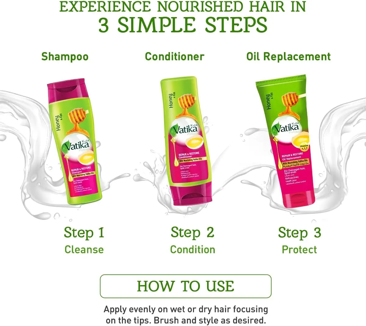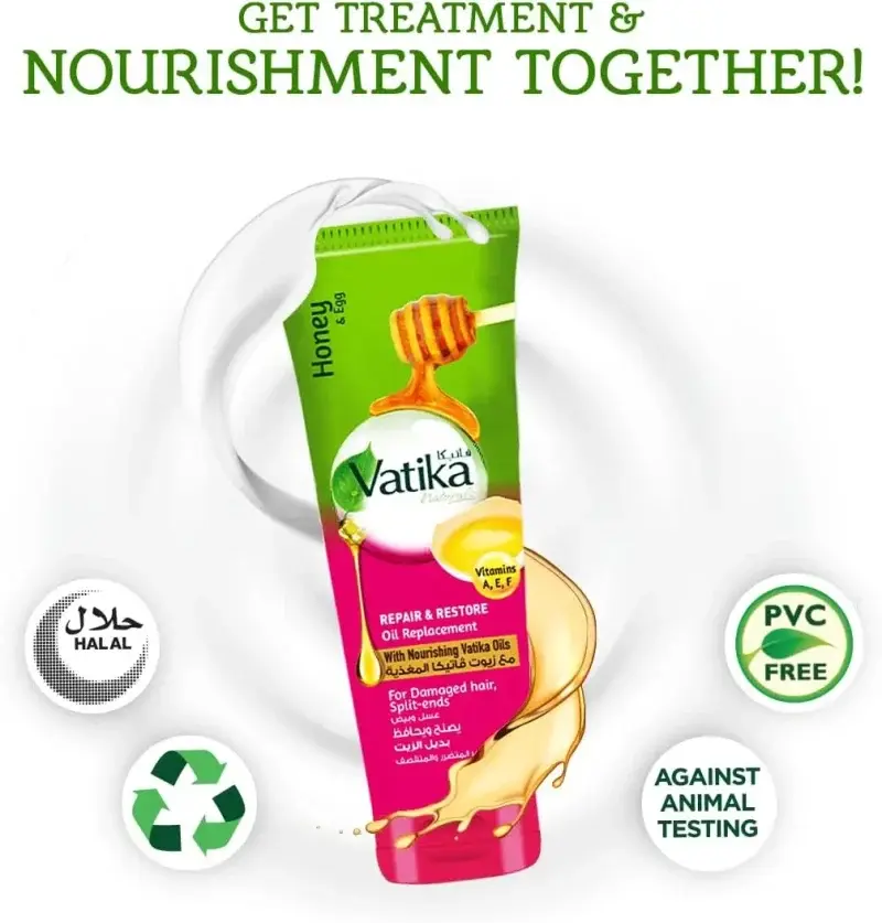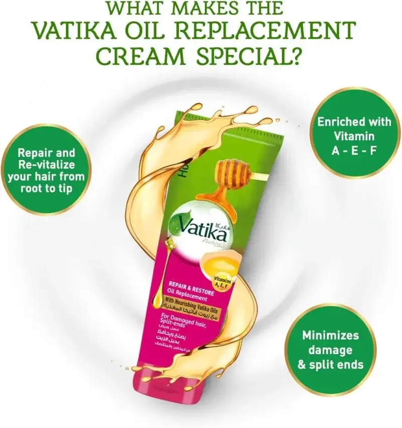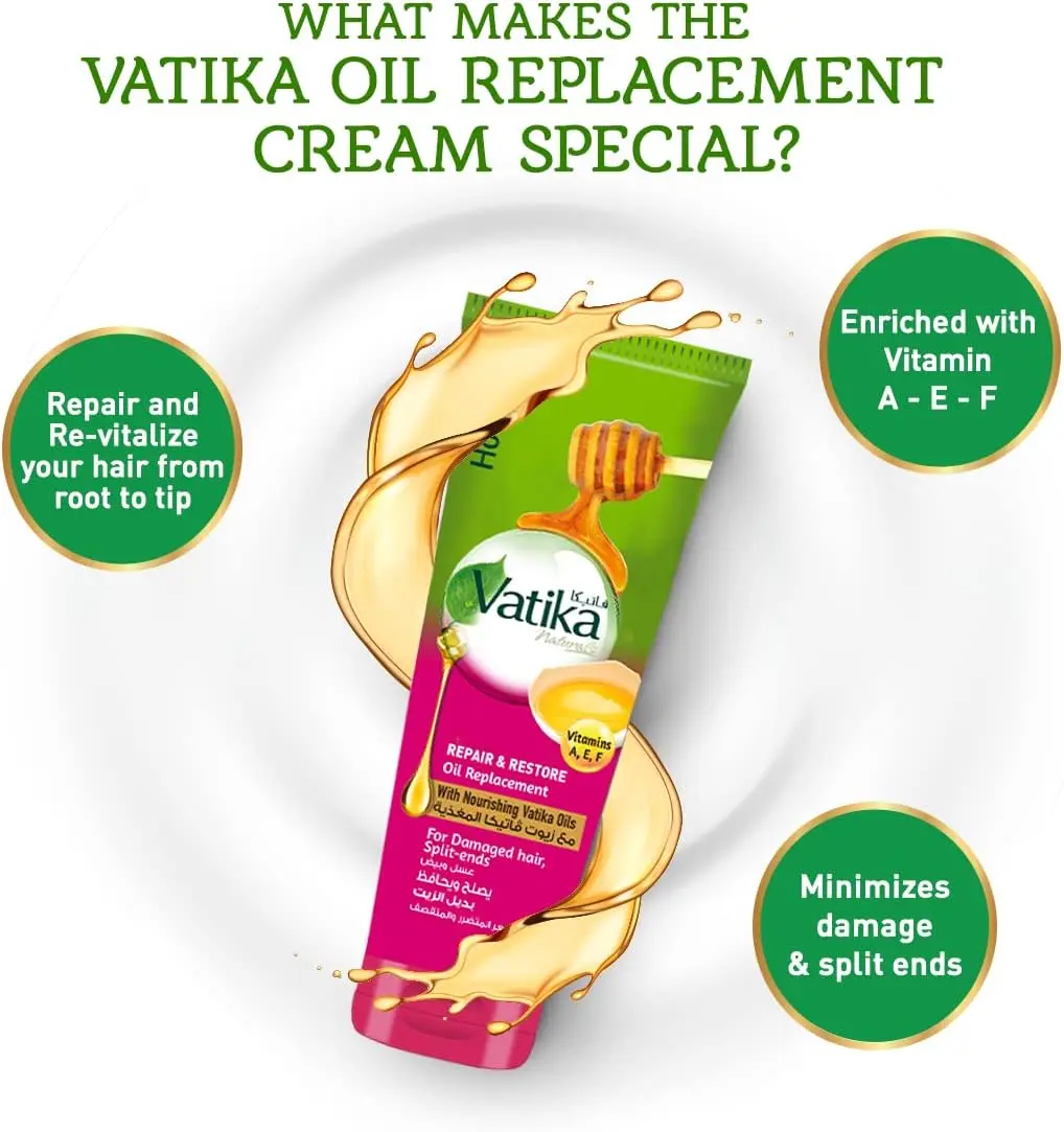 Is your hair feeling damaged, dull, and lifeless? Vatika Naturals Repair & Restore Oil Replacement is the perfect solution for bringing back its natural strength and shine. Unlike heavy oils, this cream offers a non-sticky, non-greasy formula enriched with the goodness of Honey and Egg, providing all the nourishing benefits without the heavy feel.