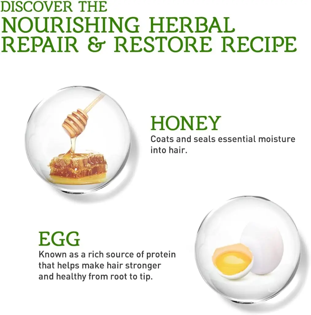 Transform your damaged hair with this intensive treatment. The natural ingredients work to repair and restore, combating the effects of sunlight and styling products. Honey’s emollient and humectant properties smooth the hair shaft, adding moisture and restoring luster to frizzy, dry, or dull hair, making it feel silky smooth.