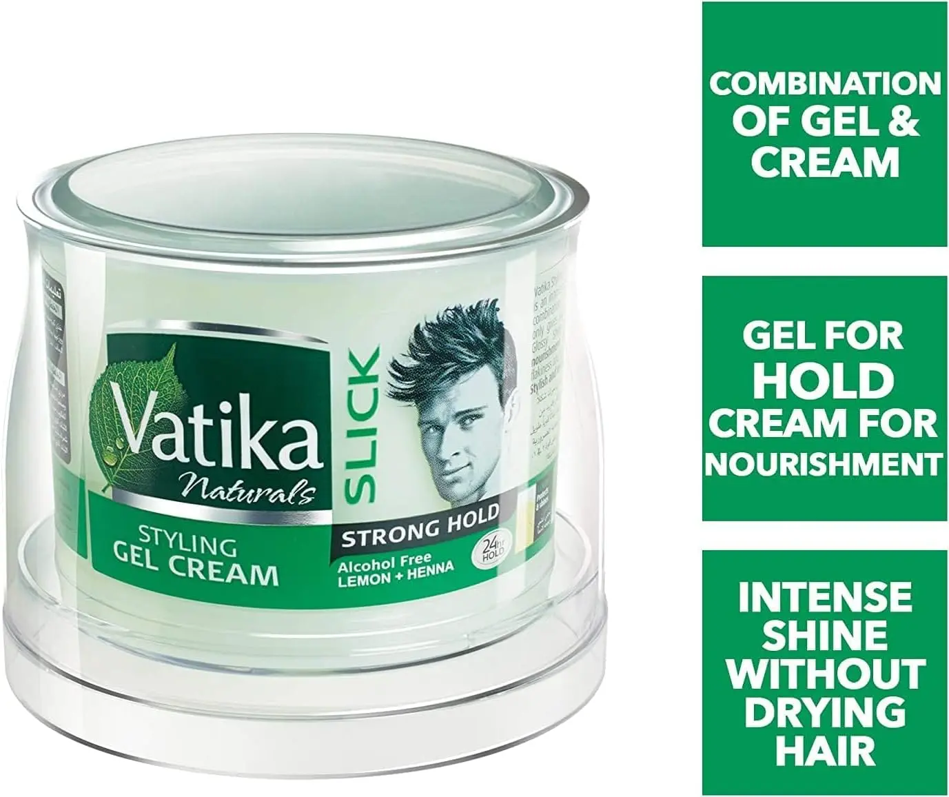 Struggling to keep your hairstyle in place throughout the day? Vatika Naturals Slick Strong Hold Styling Gel Cream is your answer to achieving a defined, nourished look that lasts. Infused with the natural goodness of Lemon and Henna extracts, this styling cream not only provides a powerful, long-lasting hold of up to 24 hours but also nourishes your hair, leaving it with an intense shine.