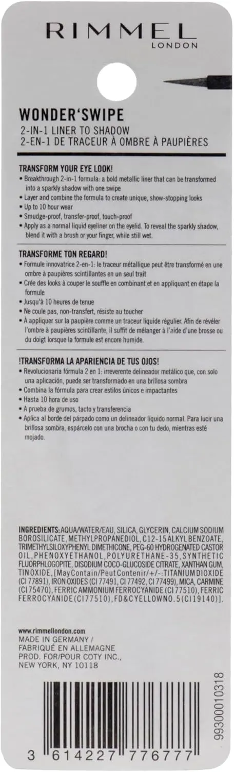 Looking for a way to achieve dramatic eye looks without the fuss? The Rimmel London Wonder Swipe 2-in-1 Liner to Shadow is your go-to product. This breakthrough formula lets you create bold metallic liner looks or blend it into a shimmering eyeshadow with just your fingertip. Simplify your makeup routine and unleash your creativity!